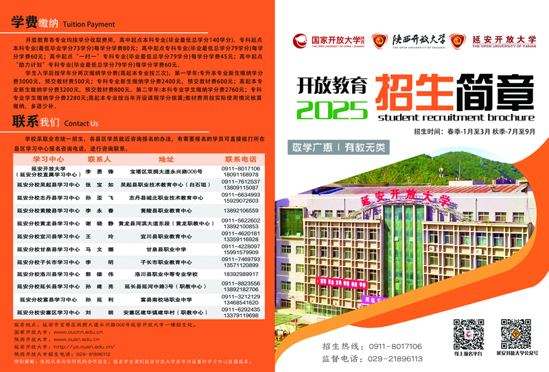 延安開(kāi)放大學(xué)2025年春季招生報(bào)名已經(jīng)開(kāi)始啦!