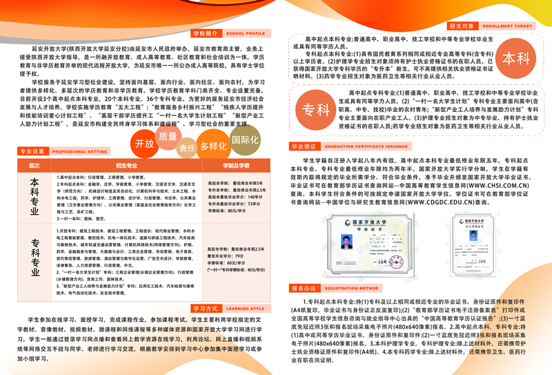(延安電大)報(bào)名地點(diǎn): 延安開(kāi)放大學(xué)一樓招生處